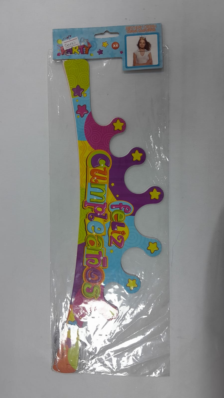 CORONA FELIZ CUMPLEAÑOS MULTICOLOR X6 UDS