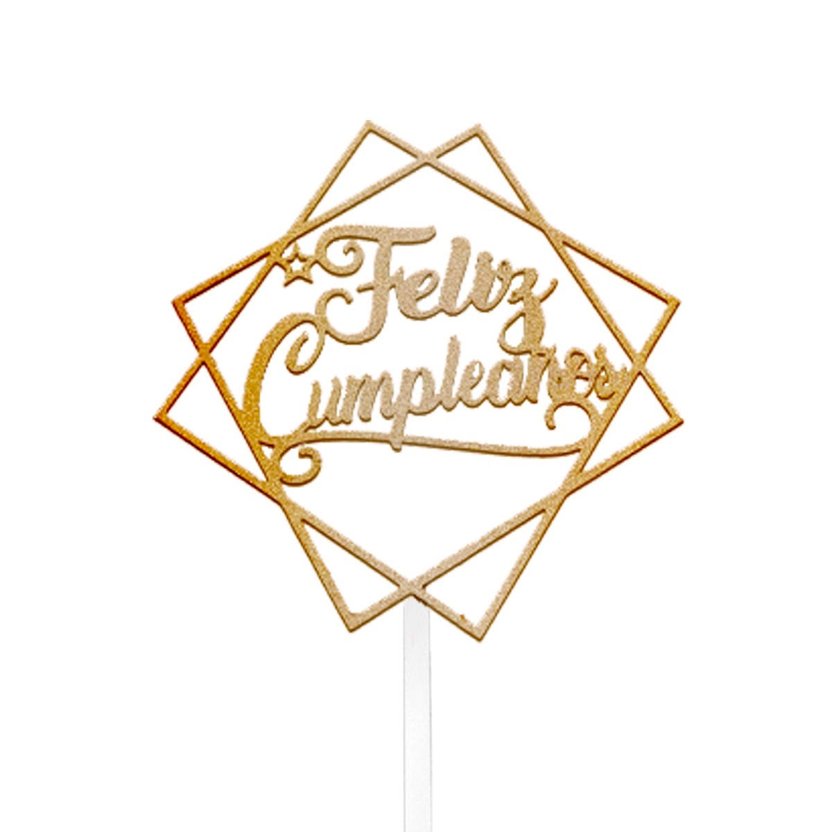 TOPPER FELIZ CUMPLEAÑOS DORADO PEQUEÑO