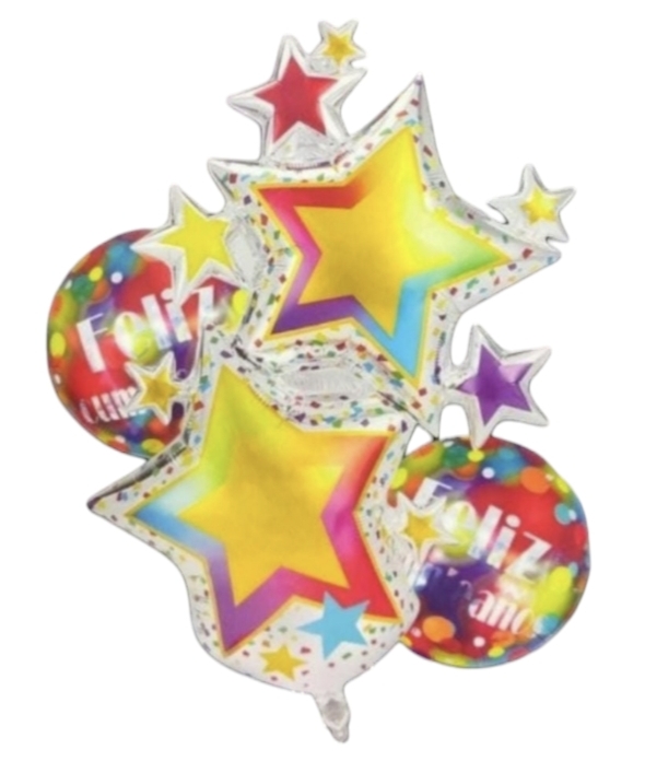 BOUQUET DE GLOBOS FOIL FELIZ CUMPLEAÑOS ESTRELLAS