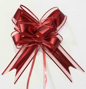 Moño rojo satinado. Mide aproximadamente 75cm x 10.